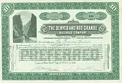 Le Denver and Rio Grande Railroad (D&RG) fut fondé en 1870 par le Général William Jackson Palmer qui avait l'intention de relier Denver à Mexico. L'écartement étroit fut choisi, car il était moins cher que l'écartement standard et qu'il était plus approprié à la montagne. Une lutte acharnée eut lieu entre 1877-1880 avec l'Atchison, Topeka and Santa Fe Railway pour aller vers Raton pass. Les deux rivaux engagèrent des bandits armés et achetèrent des politiciens. En , le Santa Fe défendit sa rotonde de Pueblo sous le commandement de Bat Masterson; à cette occasion le trésorier du D&RG, R. F. Weitbrec, alla jusqu'à payer les défenseurs pour qu'ils partissent. Finalement le Santa Fe gagna le droit de passage via le Raton Pass. De son côté, le D&RG dépensa 1,4 million de dollars dans la construction de sa voie ferrée dans la Royale Gorge de la rivière Arkansas pour arriver à la région minière de Leadville, Colorado. Par la suite, le D&RG se focalisa sur l'exploitation lucrative des mines de l'Ouest.