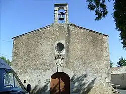 La façade, d'une grande simplicité, est ornée au-dessus de la porte d'entrée d'un blason sculpté aux armes de la famille de Guinot, seigneurs de Dercie au XVIIIe siècle, qui agrandirent le sanctuaire. Ce blason est à trois pals sur un support sculpté d'un trophée d'armes, d'armures et d'un heaume d'où jaillissent des feuillages. Le clocher se limite à un modeste campanile.