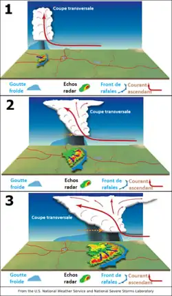 ). - ↑ (en) M.C. Coniglio et D. J. Stensrud, « Interpreting the climatology of derechos », Weather and Forecasting, vol. 19, no 3, , p. 595-605 (DOI 10.1175/1520-0434(2004)019<0595:ITCOD>2.0.CO;2, lire en ligne [PDF], consulté le ).