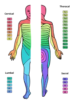 En médecine, l'étude des dermatomes permet de déterminer les zones de lésion de la moelle épinière ou du tronc cérébral. Le déficit sensitif au niveau de certains dermatomes évoque la lésion d'un niveau médullaire déterminé.