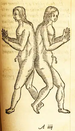 Pour Paré, un excès de semence mène à dédoubler les corps, comme dans la Figure de deux filles gemelles, jointes et unies par les parties posterieures.