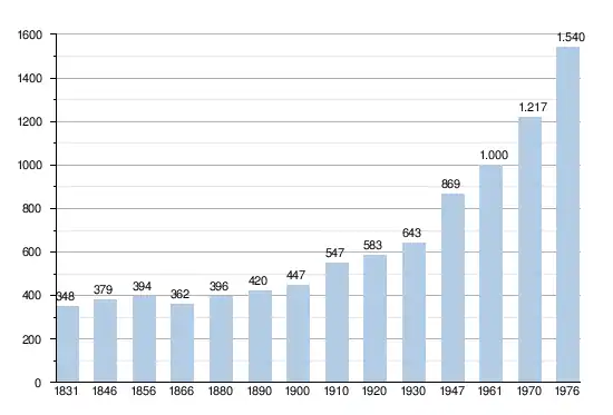 - Sources : INS, Rem. : 1831 jusqu'en 1970 = recensements, 1976 = nombre d'habitants au 31 décembre.