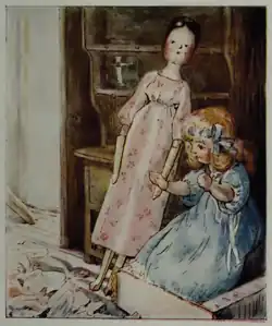 L’histoire commence par « il était une fois » et décrit une « très belle maison de poupée » appartenant à une poupée nommée Lucinda et à sa poupée-cuisinière Jane. Jane ne cuisine jamais car la nourriture de la maison de poupée est en plâtre et a été « achetée toute faite, dans une boîte pleine de copeaux ». Bien que la nourriture ne se détache pas des assiettes, elle est « extrêmement belle ».