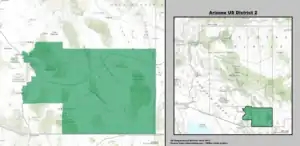 Avant janvier 2023, le 2e district de l'Arizona était situé dans le coin sud-est de l'État et comprenait les comtés de Cochise et de l'est de Pima, attirant la majeure partie de sa population de la ville de Tucson. La majorité de ce district a été renumérotée 6e district, tandis que le 2e a été redessiné pour reprendre essentiellement ce qui était le 1er district de 2003 à 2023.