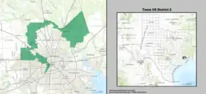 Le 2e district congressionnel du Texas se trouve dans la partie sud-est de l'État du Texas. Il englobe des parties du nord et de l'est du Comté de Harris et du sud du Comté de Montgomery, au Texas.