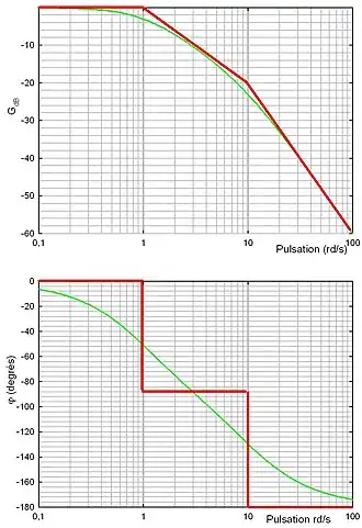 Cependant, lorsque cette fonction de transfert est compliquée, il est plus facile de prendre en compte les contributions de chaque terme au fur et à mesure en faisant croître la pulsation .