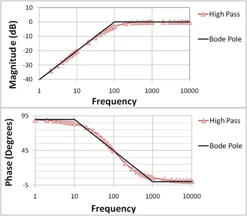 Dans un repère logarithmique, se traduit par une pente de -40 dB/décade ou encore -12 dB/octave. On parle également de pente -2. Le diagramme de Bode asymptotique du module se résume donc à deux tronçons linéaires.