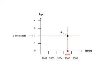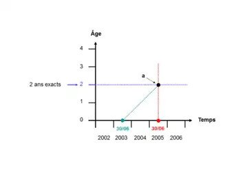 - décès à 2 ans exact d’un individu né le 30/06/2003