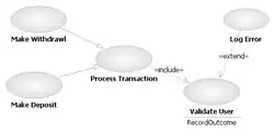 Dans ce type d'interaction, le premier cas d'utilisation inclut le second et son issue dépend souvent de la résolution du second. Ce type de description est utile pour extraire un ensemble de sous-comportements communs à plusieurs tâches, comme une macro en programmation. Elle est représentée par une flèche en pointillé et le terme include.