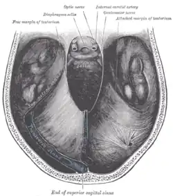 Le diaphragme sellaire est une expansion de dure-mère qui vient entourer la tige pituitaire. Il s'établit entre le tuberculum sellae et le dorsum sellae de l'os sphénoïde.