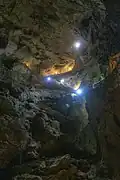 Vraisemblablement formée par un glissement de terrain, la grotte abrite la plus haute chute d'eau souterraine des Balkans puisque la rivière se jette d'une hauteur de 42 mètres dans la plus grande salle souterraine des Balkans : 110 mètres de long, 35 mètres de haut et 40 mètres de large. 400 mètres plus bas, la galerie siphonne et le reste de la grotte reste inconnu[1].