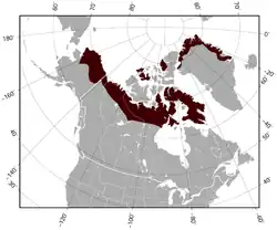 Il vit au Canada et aux États-Unis. On le trouve dans les hauteurs sèches et rocheuses en été et dans les basses prairies en hiver[4].