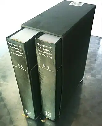 - ↑ « Le Dictionnaire Historique de la langue française - Coffret compact 3 volumes - Nouvelle édition augmentée - Ouvrage imprimé », sur Le Robert, (consulté le )