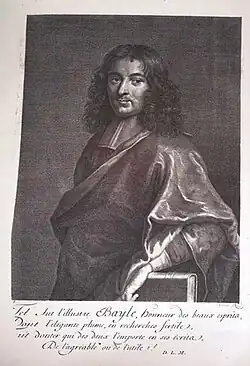 Bayle reste, malgré cette attitude sceptique —qui est pour lui un outil d’analyse, et non pas un but en soi[28]—, profondément enraciné dans le protestantisme, et défend l’idée que la raison humaine est limitée, de sorte que la révélation divine est nécessaire à la connaissance de la vérité[29]. Cependant, il ne donne pas son assentiment à un dogme religieux sans avoir étudié l’argumentation sur laquelle il s’est fondé, une attitude qui scandalise tant protestants que catholiques.