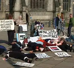 Un die-in, parfois appelé « lie-in », est une forme de manifestation dans laquelle les participants simulent la mort[1]. Les die-ins sont des actions utilisées par divers groupes militants, notamment des défenseurs des droits des animaux[2], des militants contre la guerre, des défenseurs des droits de l'homme[3], des militants du sida[4], des militants pour le contrôle des armes à feu[5] et des défenseurs de l'environnement[6]. Souvent, les manifestants occupent une zone pendant une courte période au lieu d’être forcés de partir par la police.
