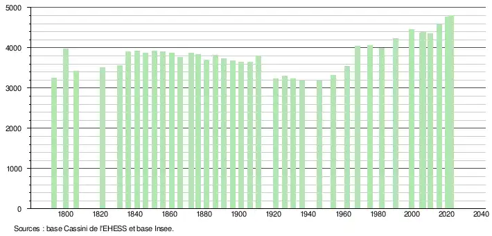 - ↑ Fiches Insee - Populations de référence de la commune pour les années 2006, 2007, 2008, 2009, 2010, 2011, 2012, 2013, 2014, 2015, 2016, 2017, 2018, 2019, 2020, 2021 et 2022.