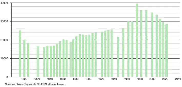 28 599 hab. (2022 en évolution de −3,4 % par rapport à 2016)