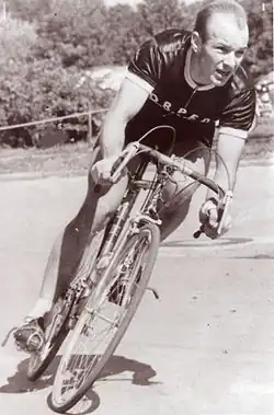 Dieter Kemper vêtu du maillot de champion du monde de demi-fond en 1975.