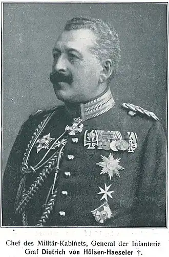 En mai 1901, Hulsen-Haeseler devient chef du cabinet militaire. En 1902, il est promu lieutenant général et en 1906 général d'infanterie.
