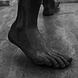 Une armature de fer[11], scellée au plomb, dépasse du pied : elle servait à fixer la statue sur un piédestal de pierre. Les parois sont très fines[12].