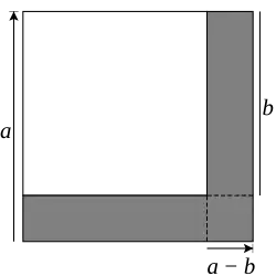 La différence de deux carrés peut également être illustrée géométriquement comme la différence de deux aires carrées dans un plan. Sur le diagramme, la partie grisée représente la différence entre les aires des deux carrés, c'est-à-dire . L'aire de la partie ombrée peut être trouvée en additionnant les aires des deux rectangles ; , qui peut être factorisé en . Donc, .