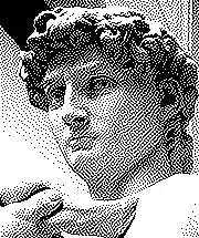 - l’algorithme Scolorq est un algorithme expérimental de quantification de couleur spatiale qui combine la quantification de couleur et la diffusion d'erreurs pour produire une image optimale. À cause de sa nature, l'image d'exemple ci-dessous n'est pas strictement en noir & blanc, mais à deux tons de gris[6] ;