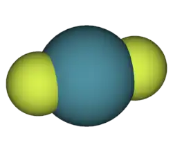 La molécule RnF2 modélisée a une conformation linéaire et une longueur de liaison Rn-F de 208 pm[4].