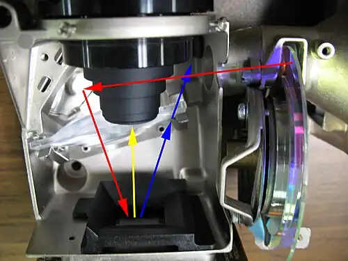 La lumière, émise par une lampe, passe à travers une roue chromatique (rouge, vert, bleu), et éclaire la puce DLP. Cette puce traite ainsi alternativement chaque couleur. Le mélange de l'ensemble des images monochromatiques sortant de la puce DLP donne une image naturelle grâce à la persistance rétinienne.