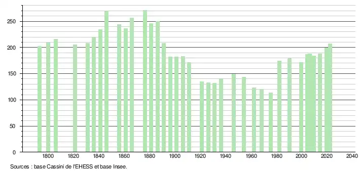 - ↑ Fiches Insee - Populations de référence de la commune pour les années 2006, 2007, 2008, 2009, 2010, 2011, 2012, 2013, 2014, 2015, 2016, 2017, 2018, 2019, 2020, 2021 et 2022.