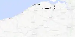 En reliant tous ces points, on voit que la digue suivait à peu près la côte actuelle de Dunkerque jusqu'au Zwin, qu'ensuite elle se trouvait tantôt au nord, tantôt au sud de l'actuelle frontière, et qu'après avoir quitté celle-ci à Sas-de-Gand, le dernier point où elle est encore attestée se trouve immédiatement au sud de la partie agglomérée de la ville de Terneuse proprement dite.