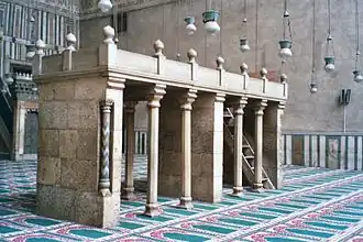 Cette caractéristique ne se retrouve pas dans toutes les mosquées mais se retrouve le plus souvent dans les grandes mosquées où il est difficile pour les fidèles éloignés du mihrab d'entendre l'imam[6]. Élevé sur des colonnes, il peut s'agir d'une structure autonome près du milieu de la salle de prière ou d'un balcon adossé à un pilier ou à un mur opposé au minbar[2].
