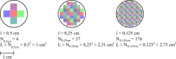 | Dimension de Minkowski-Bouligand ou "Box-counting" | Tout ensemble | où N(ε) est un nombre de sous-ensembles de diamètre au plus ε nécessaires pour recouvrir l'ensemble. | La plus courante et la plus simple pour mesurer numériquement la dimension d'une fractale. Elle prend pour base la couverture de l'ensemble fractal par des ensembles de taille décroissantes. S'appuie sur une notion de comptage et non de mesure, ce qui la rend moins universelle. Peut, alors, être supérieure à la dimension de Hausdorff, mais jamais inférieure. |
