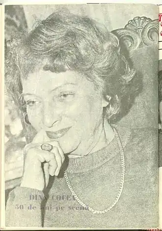 Dina Cocea, née le [1] et morte le [2], est une actrice de théâtre roumaine et une star de cinéma occasionnelle dont la carrière a duré 50 ans. Parmi ses autres activités, Cocea a été actrice en résidence au Théâtre national de Bucarest pendant 17 ans, professeure et doyenne de l'Université de Bucarest, écrivaine et chroniqueuse, dramaturge, militante politique et représentante auprès de l'UNESCO.