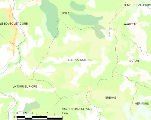 - ↑ « Orthodromie entre Dio-et-Valquières et Bédarieux », sur fr.distance.to (consulté le ).