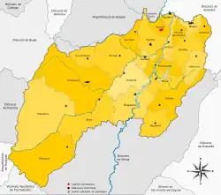 Il comprend les municipalités d'Alpujarra, Ataco, Carmen de Apicalá, Chaparral, Coyaima, Cunday, Dolores, Espinal, Flandes, El Guamo, Icononzo, Melgar, Natagaima, Ortega, Planadas, Prado, Purificación, Rioblanco, Saldaña, San Antonio (excepté le district de Playarrica), San Luis (excepté le district de Payande), Suárez, Villarrica et le district de Gualanday dans la municipalité de Coello.