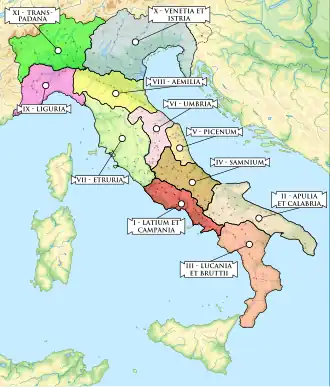 - Réorganisation augustéenne (les 11 régions administratives d'Italie, pour trois siècles)