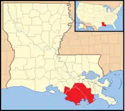 Le territoires couvrent entièrement les paroisses de Terrebonne et de la Fourche. Il couvre également la ville de Morgan City dans la paroisse de Sainte-Marie ainsi que la ville de Grand Isle au sein de la paroisse de Jefferson.