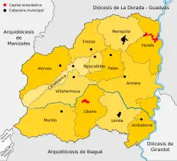 Il comprend les municipalités d'Ambalema, Armero, Casabianca, Falan, Fresno, Herveo, Honda, Lérida, Líbano, Murillo, Palocabildo, San Sebastián de Mariquita et Villahermosa du département de Tolima.