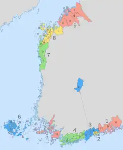 | Territoire | Uusimaa, Uusimaa de l'Est, Finlande propre, Ostrobotnie et Åland |