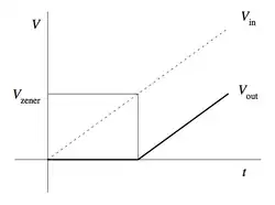 Une diode Zener peut être appliquée à un circuit avec une résistance pour agir comme un décalage de tension. Ce circuit abaisse la tension de sortie d'une quantité égale à la tension de claquage de la diode Zener.