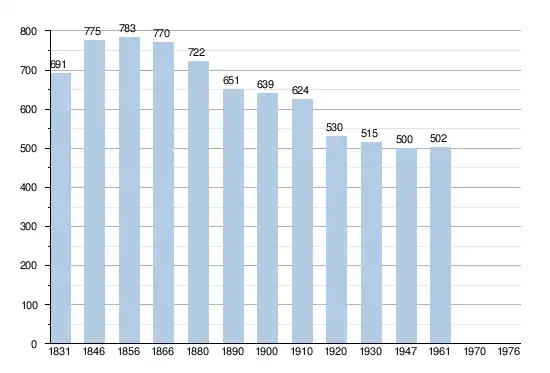 - Sources:INS, Rem:1831 jusqu'en 1970=recensements, 1976= nombre d'habitants au 31 décembre