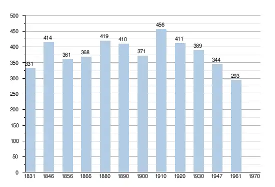 - Sources:INS, Rem:1831 jusqu'en 1970=recensements, 1976= nombre d'habitants au 31 décembre