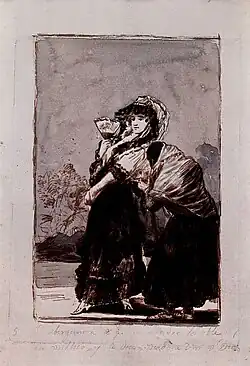 La première étude à l'encre de Chine, le numéro 6 de l'Album B, présente les deux personnages principaux bien définis. La seconde étude porte une légende au crayon : Se avergüenza de que su madre le hable en público y le dice «perdone VM. por Dios» (Elle a honte que sa mère lui parle en public et lui dit « pardonnez moi pour Dieu »[5]).