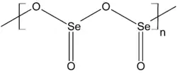 Le dioxyde de sélénium solide est un polymère unidimensionnel constitué d'une chaîne où alternent des atomes d'oxygène et de sélénium. Les atomes de sélénium ont une géométrie pyramidale. Les liaisons Se–O ont une longueur de 162 pm. L'orientation des atomes d'oxygène est alternée le long de la chaîne d'atomes de sélénium et d'oxygène, ce qui correspond, du point de vue stéréochimique, à un arrangement syndiotactique.