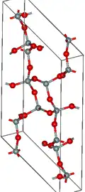 Dans la majorité des silicates, les atomes de silicium présentent une coordination tétraédrique, avec quatre atomes d'oxygène entourant un atome de silicium central. Les polymorphes du quartz sont des exemples de telles structures, qui forment un réseau tridimensionnel dans lequel chaque atome de silicium est lié par covalence à quatre atomes d'oxygène de manièe tétraédrique.