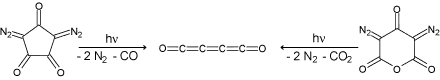 - ↑ Detlev Sülzle, Helmut Schwartz, Identification of Butatrienedione, Its Radical Anion, and Its Radical Cation in the Gas Phase, Angewandte Chemie Int. Ed., 1990, vol. 29, pp. 908–909. DOI 10.1002/anie.199009081.