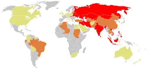 Dans les années 1930, la vaccination tend à se généraliser dans la plupart des autres grands pays industrialisés en Europe (Allemagne, Belgique, Grande-Bretagne, Italie, Suisse, Hongrie, U.R.S.S), en Égypte et en Turquie, aux Amériques, au Japon et en Australie[15]. Elle est rendue obligatoire en Allemagne en 1941.