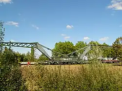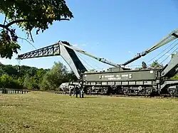 Une des flèches est de construction soudée, tandis que l'autre est rivetée. Cela est dû à un incident survenu pendant une intervention sur la ligne de Paris à Bâle au mois d', lors de la pose d'un tablier sur la future autoroute A4 à Champigny-sur-Marne où le Diplodocus bascule et se retrouve couché sur le flanc[3],[4]. Le Diplodocus n'est plus utilisé depuis les années 1980[2].