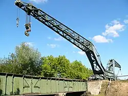 La manipulation de la grue requiert six hommes[2].