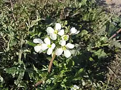 Le Diplotaxis fausse roquette (Diplotaxis erucoides), appelé aussi Roquette blanche ou Fausse roquette, est une espèce de plantes à fleurs appartenant à la famille des Brassicacées (ou Crucifères). Surtout répandue en Méditerranée occidentale où elle tapisse le sol de ses fleurs blanches, cette adventice des cultures (des vignes notamment) présente la particularité de fleurir abondamment en hiver. La comparaison avec la roquette, outre le fait qu'il s'agisse de deux brassicacées assez proches, est liée à la forme des feuilles pennatilobées.